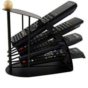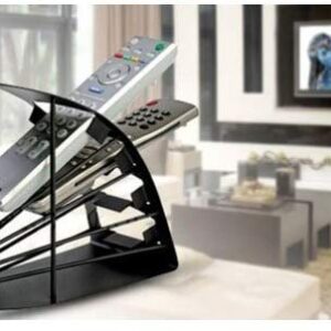 Remote Control Caddy organizes TV- gadget related hand-held remotes Convenient table top holder features stylish curved, steel made. The stair-step shape that keeps up to four remote controls in view and easily accessible.